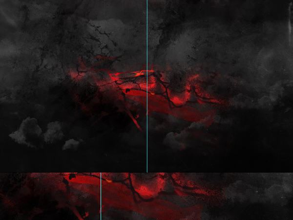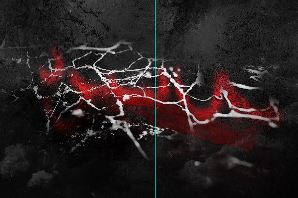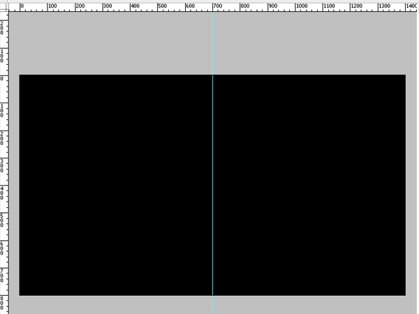 Create a new document 1400 x 800 px and fill it with black. Draw a vertical guide that cuts your document in half.