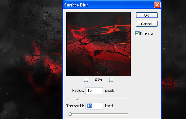 Merge all the background elements and go to Filter > Blur > Surface Blur.